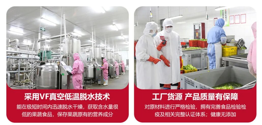 大顺食品深知原料之根本,特设立自有种植基地,并实施“五统一”管理模式,确保原料的纯净与优质。公司内设先进的产品化验室,对生产全过程实施严格监控,确保每一环节都符合高标准。通过不断探索与尝试,成功推出涵盖VF果蔬脆片等在内的80余种系列产品,年生产能力高达5000吨。